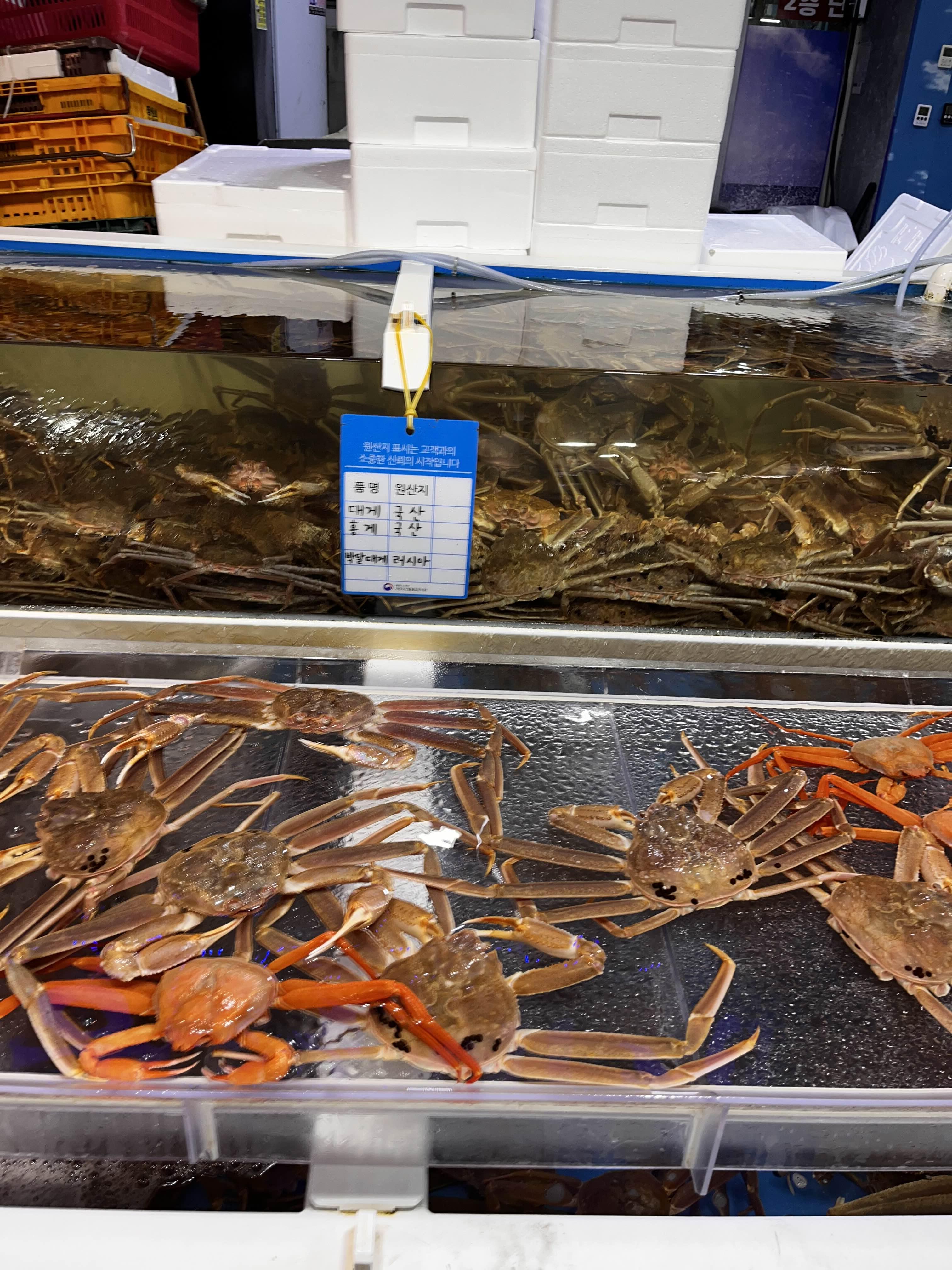 대게 수산물센터에서 대게 구경 실~컷 하고 오감퐝퐝 죽도시장 안에서 간식을 구매했습니다.